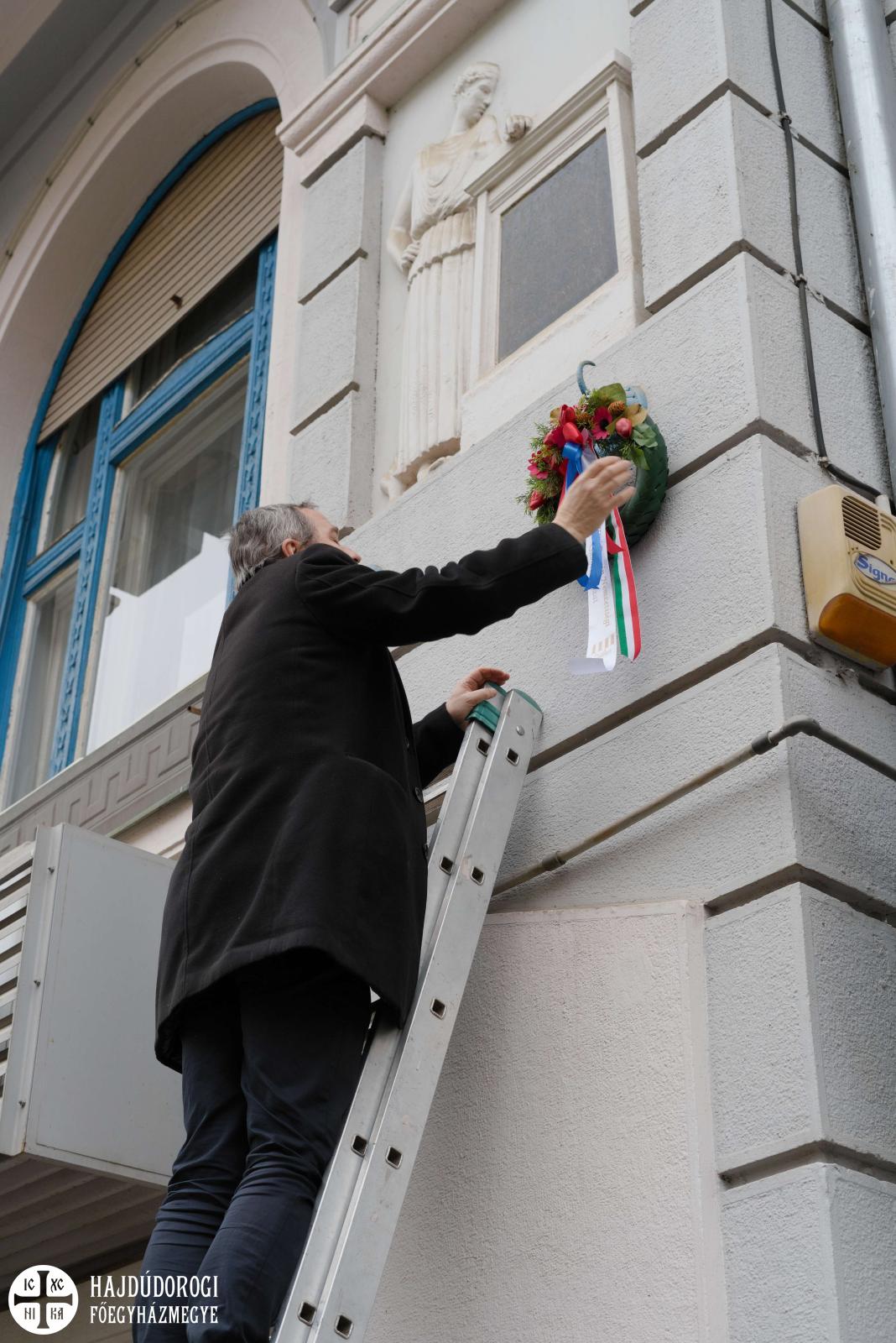 A merényletben elhunyt vértanúk lelki nyugalmáért nemcsak a templomban imádkoztunk. Az Iparkamara utcán Seszták István főhelynök, Nyirán János fődiakónus és Sivadó Miklós debreceni parókus végezték el a Pannichida szertartását, melynek zárásaként a jelenlévők elhelyezhették koszorúikat a bombamerénylet helyszínén elhelyezett emléktáblánál.