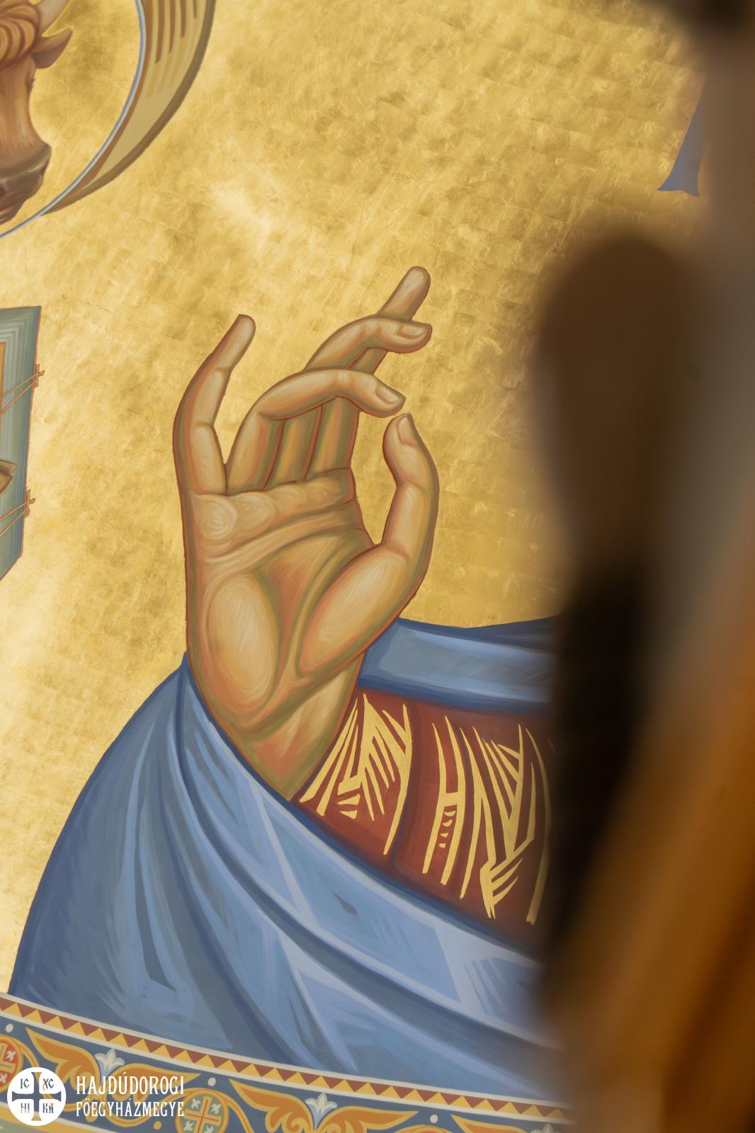A nagycsütörtöki evangéliumi szakaszokat Szakállas Csaba diakónus olvasta fel. A szentély mennyezetéről ránk tekintő Pantokrátor tekintetébe könnyű belefeledkezni. Az Evangélium szavait hallgatva viszont most nemcsak a mindenség ura nézett ránk, hanem egy elárult, megtagadott és elfogott ember, szemeiben csalódással és fájdalommal.