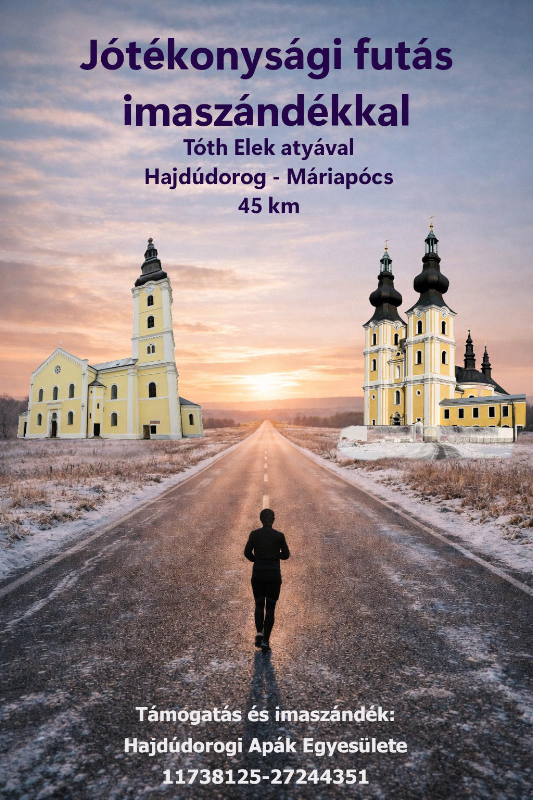 A Hajdúdorog-Máriapócs távot már tavaly is megtettem vajhagyó szerdán. Ketten futottunk, és volt egy kísérőnk is. Nagyon baráti tempóban haladtunk, és nem is a teljesítés volt a lényeg, hanem maga az alkalom és a futás közbeni imádság. Nagyon megfogott az érzés: futás után leborulásokat végezni a templomban. Már akkor eldöntöttem, hogy idén is szeretném ezt megismételni, és egy kis pluszként a jótékonysággal összekötni.