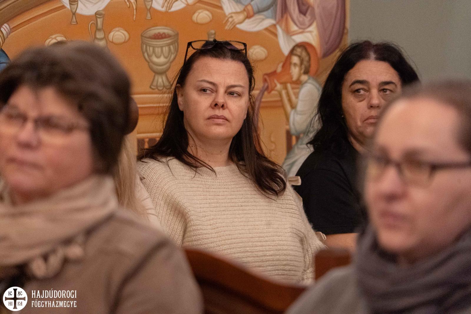 A lelkigyakorlat, a találkozás és a testvéri párbeszéd alkalma nem csupán szakmai esemény volt, hanem az egyházmegye élő közösségének ünnepe is. Álmosdról, Fülöpről, Létavértesről, Hajdúböszörményből, Dunaújvárosból, Budapestről, Pocsajról, Kecskemétről és Debrecenből is érkeztek szolgálattevők, akik mindennapjaikban a hit továbbadásának csendes, mégis meghatározó küldetését hordozzák. Az Érseki Hivatal falai között összegyűlt közösséget a Hitoktatási Iroda munkatársa, Vadász Viktória hívta egybe, hangsúlyozva: a katekéták közötti rendszeres találkozás elengedhetetlen ahhoz, hogy a szolgálat ne magányos küzdelem, hanem egymást erősítő, élő tanúságtétel legyen.