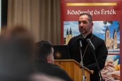 Istenhez vezető utunkon számos közvetítő segít, akik közül első helyen állnak a szentek. Érezzük az ő közelségüket, de reméljük, hogy életüket is jobban megismerjük e két nap során – mondta István atya, majd köszöntötte a Győrből, Felvidékről, Kárpátaljáról és Partiumból érkező vendégeket. A magyar kormány képviseletében Soltész Miklós egyházi ügyekért felelős államtitkár és Vinnai Győző országgyűlési képviselő vett részt a konferencián.