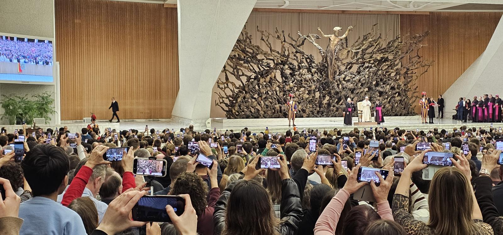 A zarándoklat egyik legmeghatározóbb élménye a pápai audiencián való részvétel volt. A IV. Pál teremben zarándokok sokasága gyűlt össze, köztük a diákotthon közössége is. Együtt imádkoztunk, majd figyelemmel és nyitott szívvel hallgattuk XIV. Leó pápa tanítását. A Szentatya közelsége, szavai és személyes jelenléte mindannyiunk számára különleges lelki megerősítést jelentett, és sokakban maradandó nyomot hagyott.