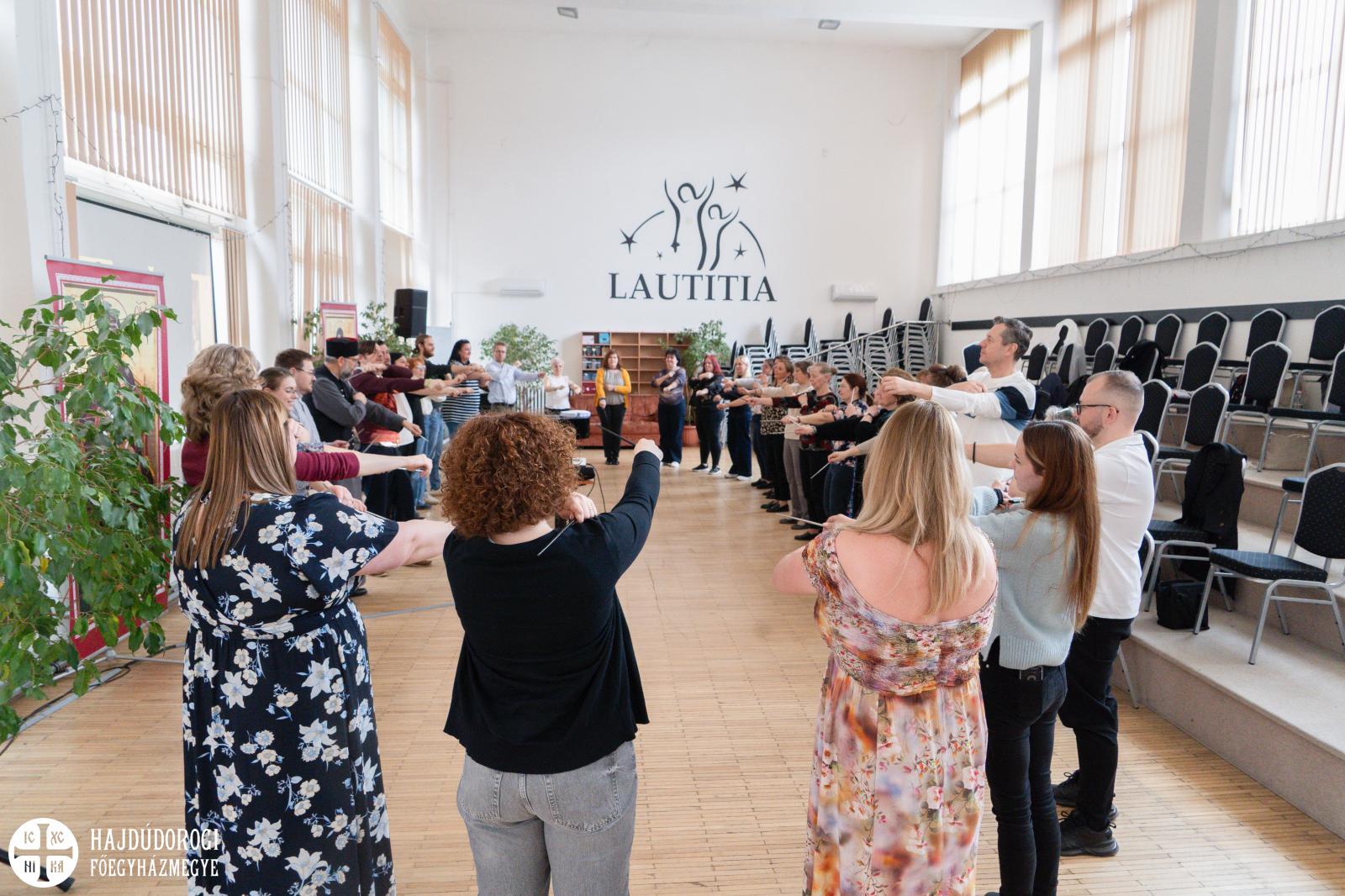 A nyitó imát követően Nemes József, a Lautitia Kóruscsalád karnagya, a képzés főszervezője köszöntötte a résztvevőket. Kiemelte: Tóth Árpád elképesztő impulzivitással végzi szerteágazó zenei tevékenységét – tanít, kórust vezet, előadásokat tart –, gazdag ötlettárából pedig bárki meríthet, aki szeretné újszerű módszereket gazdagítani munkáját.