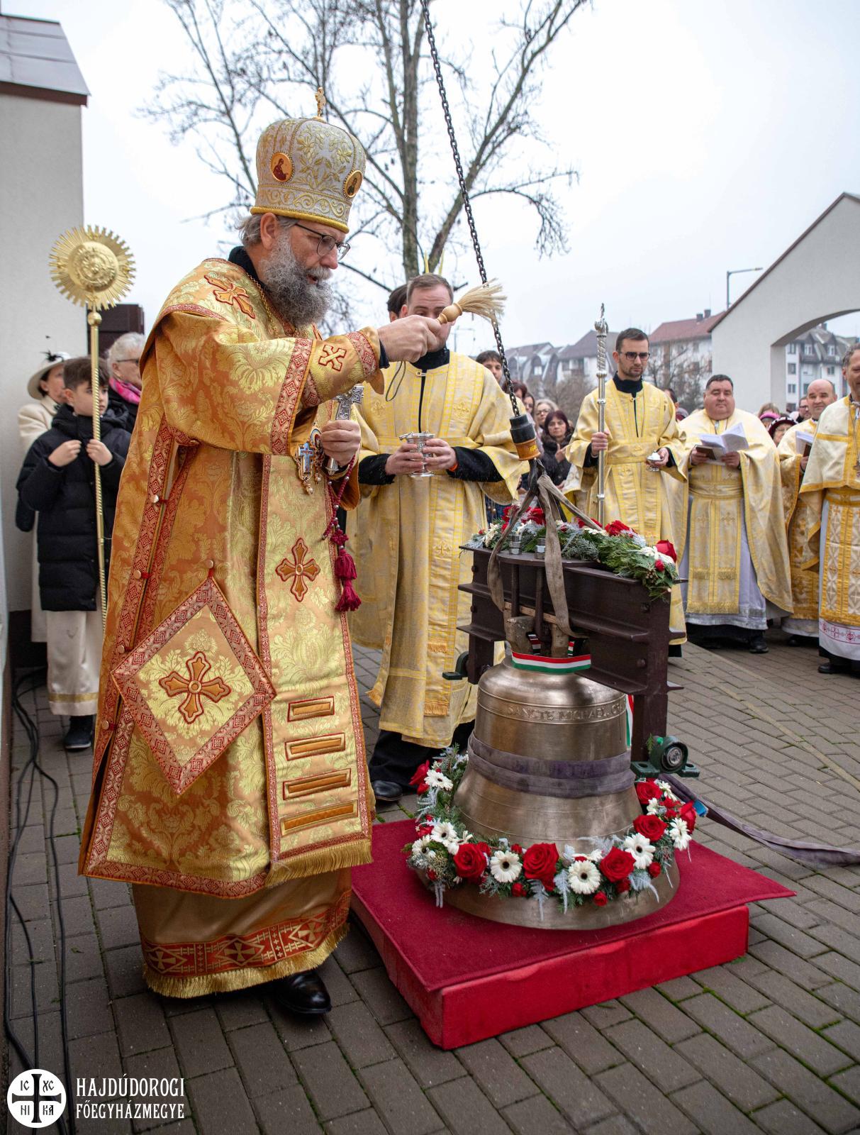 Az ünnepi Szent Liturgia végén nem maradhattak el a hála szavai sem: Szilvási János világi elnök köszöntőjében felidézte, hogyan járta be a templom a megújulás útját az állványok felállításától a falképek megszületéséig. Megemlítette a Szentháromság-ikon érkezését, a templomkert megszépülését, a díszfák és felajánlások sorát, valamint a nagylelkű adományt, amelynek köszönhetően a közösség ma már saját harangját ünnepelheti. Szavai szerint mindez annak a sok kéznek és szívnek az eredménye, amelyek csendesen, szorgalmasan, sokszor láthatatlanul dolgoztak a templomért.